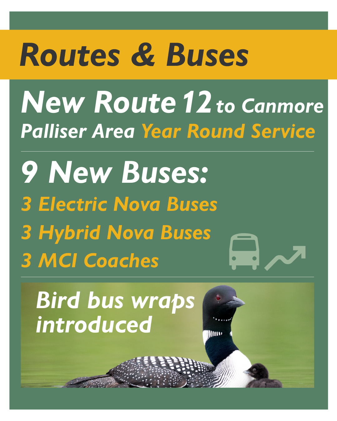 - 9 new buses – 6 Novas (3 electric, 3 hybrid), 3 MCI